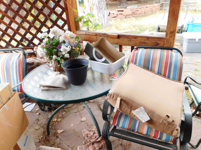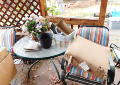 - Chairs, sofa, side tables, planters, stools, book case